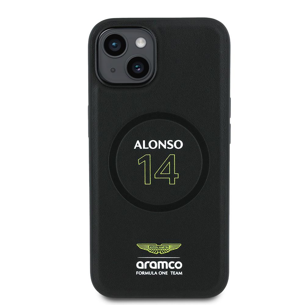 Apple iPhone 14 Kılıf Aston Martin Orjinal Lisanslı Magsafe Şarj Özellikli PU Deri Alonso 14 Baskılı Kapak