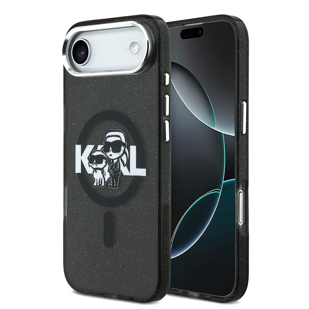 Apple iPhone 17 Air Kılıf Karl Lagerfeld Orjinal Lisanslı Parlayan Simli Karl & Choupette Sketch Logo Kapak