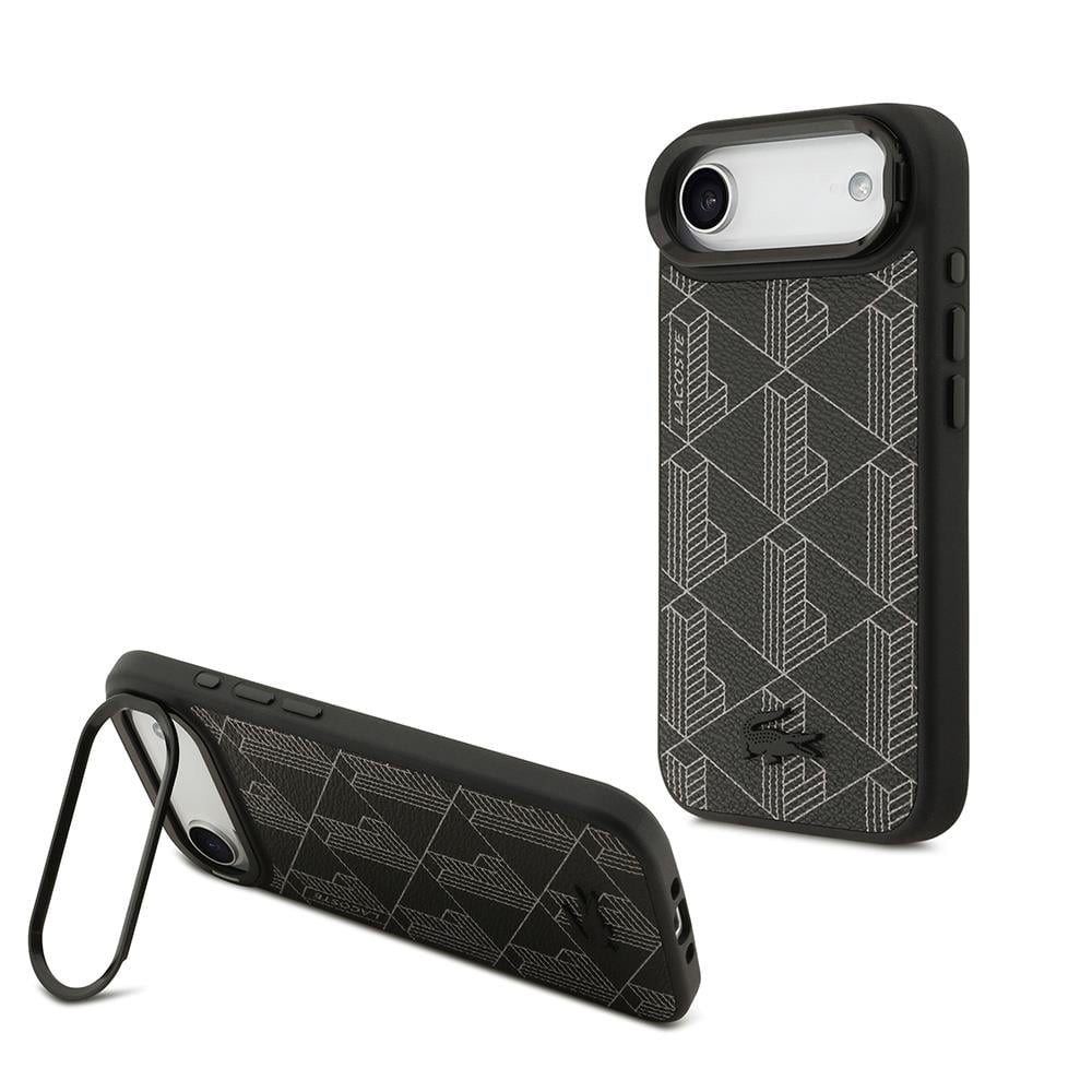 Apple iPhone 17 Air Kılıf Lacoste Orjinal Lisanslı M-safe Şarj Özellikli Standlı PU Deri Karışık Monogram Desenli Kapak (TA126335)