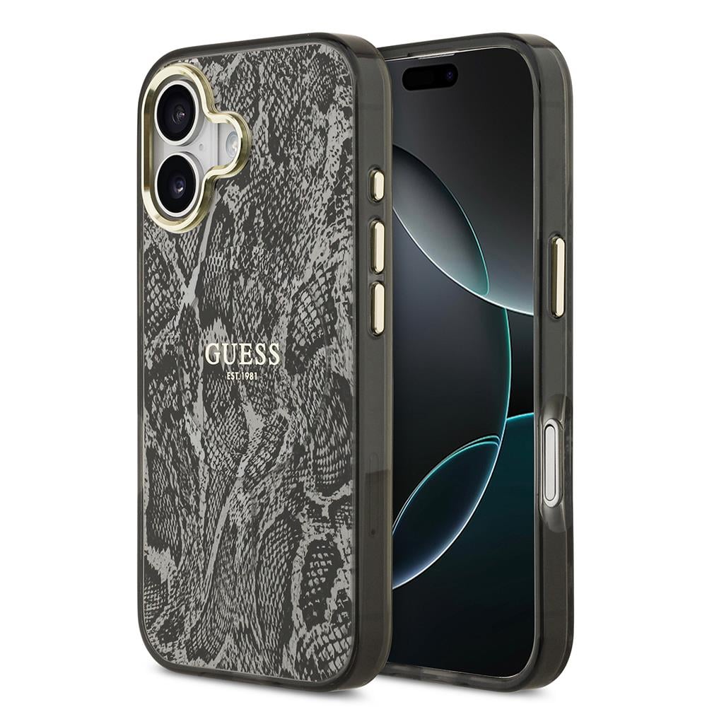 Apple iPhone 17 Kılıf Guess Orjinal Lisanslı M-safe Şarj Özellikli Yazı Logolu Python Desenli Kapak (TA126731)