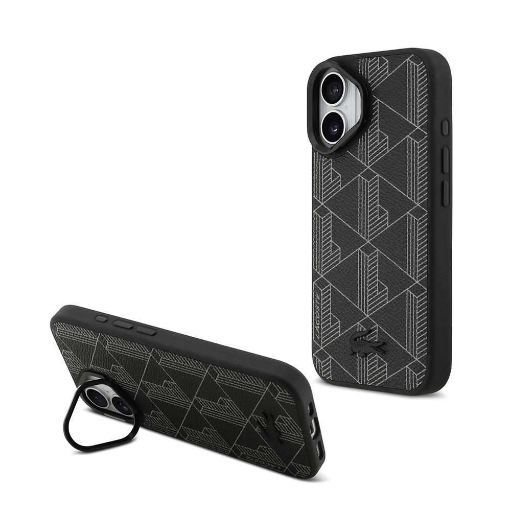 Apple iPhone 17 Kılıf Lacoste Orjinal Lisanslı M-safe Şarj Özellikli Standlı PU Deri Karışık Monogram Desenli Kapak (TA126334)