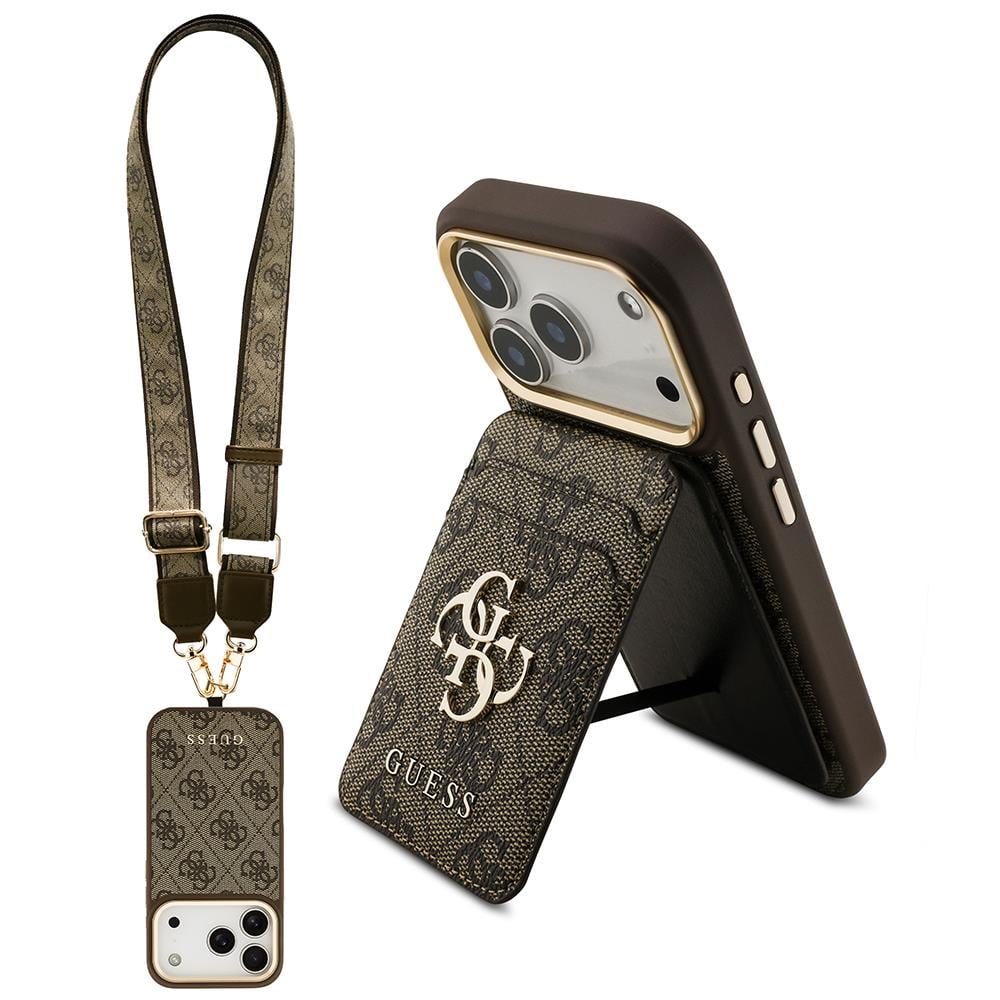 Apple iPhone 17 Pro Kılıf Guess Orjinal Lisanslı M-safe Şarj Özellikli Askılı ve 4G Logo Kartlıklı Kapak