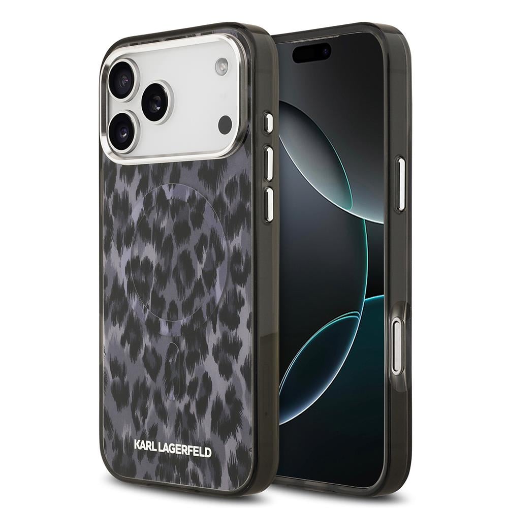 Apple iPhone 17 Pro Max Kılıf Karl Lagerfeld Orjinal Lisanslı M-safe Şarj Özellikli IML Leopar Baskılı Kapak